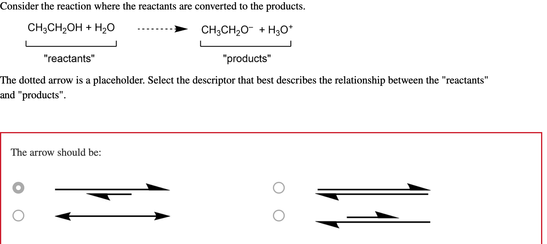 Select the arrow that best describes the relationship between the reactants and products. Bradhunt4600 is waiting for your help. Asked 2242021 60131 AM.